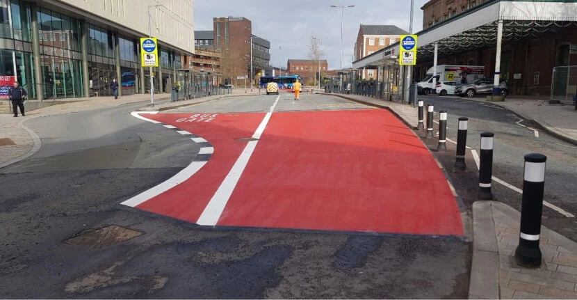 Cycle lane and crossing surfacing enhances road safety because high friction surfacing increases tyre traction at junctions and crossing points.