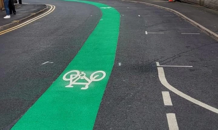 Bike lane markings in Lymm are essential for separating cyclists from motor vehicle traffic and enhancing safety.